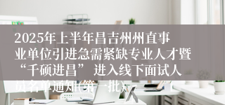 原文标题:关于公布2025年上半年昌吉州州直事业单位引进急需紧缺专业人才暨“千硕进昌” 进入线下面试人员名单的通知(第一批)