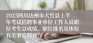 原文标题:关于达州市2025年上半年公开考试招聘事业单位工作人员(大竹县职位)考生总成绩、职位排名及体检有关事宜的公告