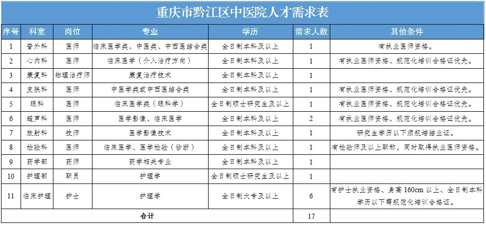 原文标题:重庆市黔江区中医院编外人员招聘简章