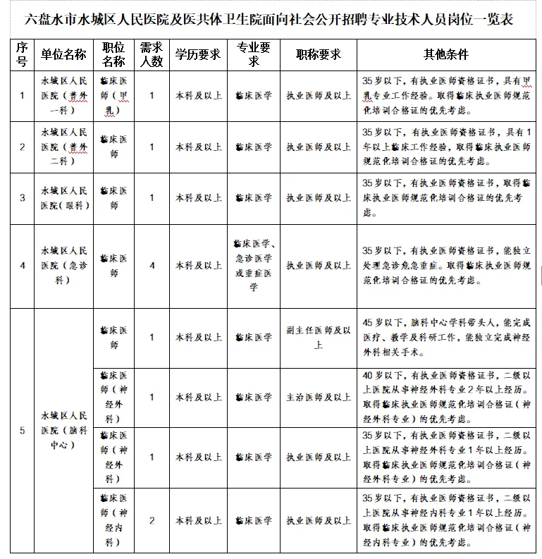 原文标题:六盘水市水城区人民医院及医共体卫生院面向社会公开招聘专业技术人员公告