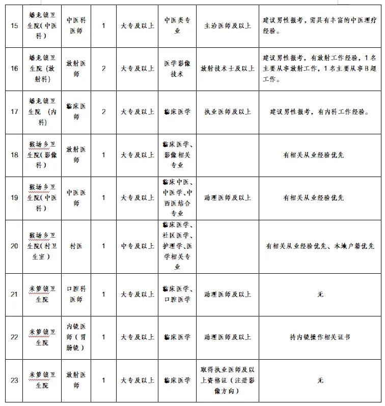 (5)米箩镇卫生院报名人员发送至1915663573@qq.com。