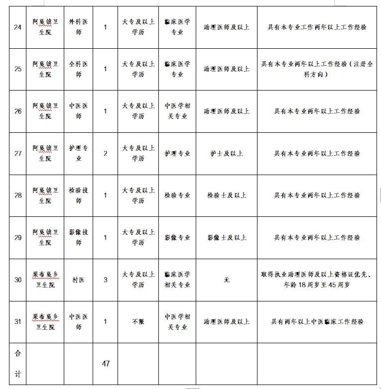 (7)果布戛乡卫生院报名人员发送至2387020097@qq.com。