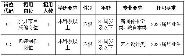 公务员考试网为各位考生带来:2025福建晋江融媒发展有限责任公司社会招聘2人公告。 考生还可以关注本栏目了解更多福建国企招聘考试精彩内容。