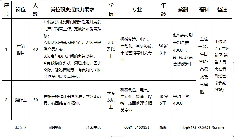 原文标题:甘肃电气装备集团有限公司公开招聘公告
