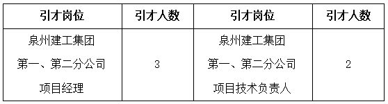 本次计划引入泉州建工集团第一、第二分公司项目经理,泉州建工集团第一、第二分公司项目技术负责人共5名,现启动意向报名。