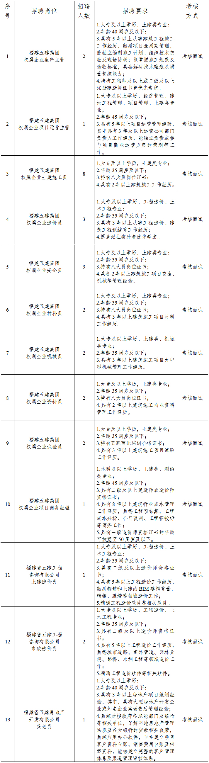 8.本公告仅适用于本次招聘,未尽事宜由福建省五建建设集团有限公司负责解释。
