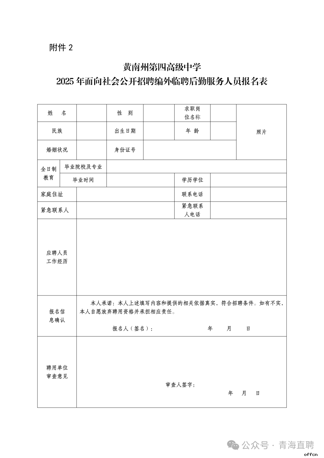 原文标题:黄南州第四高级中学2025年面向社会公开招聘编外后勤服务人员公告