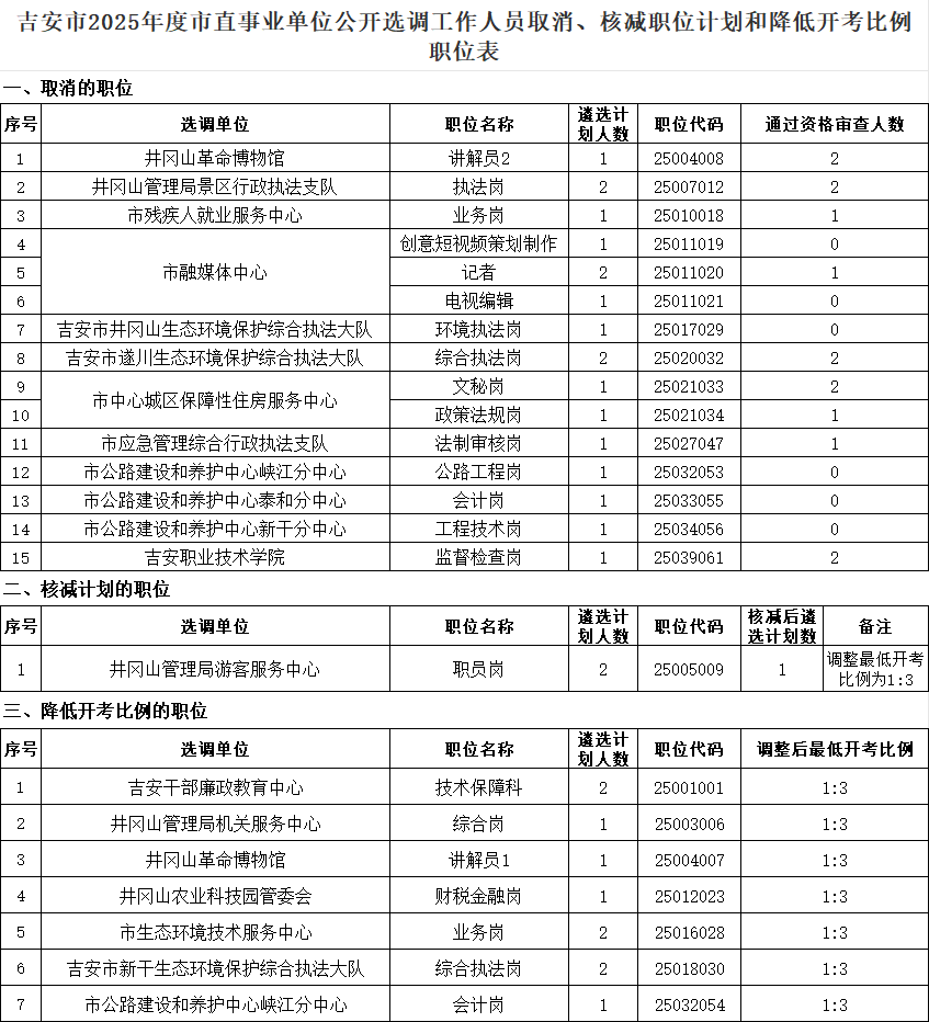 附件:吉安市2025年度市直事业单位公开选调工作人员取消、核减职位计划和降低开考比例职位表.xlsx