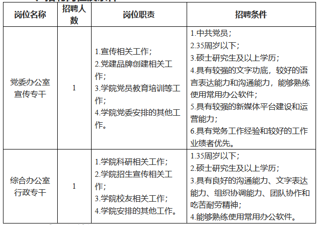 一、招聘岗位及条件