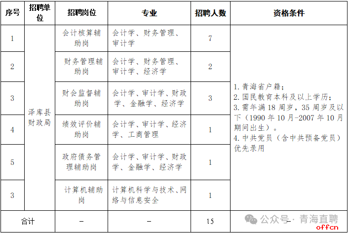 公务员考试网为各位考生带来:泽库县财政局2025年面向社会公开招聘编制外辅助人员公告。 考生还可以关注本栏目了解更多青海事业单位考试精彩内容。