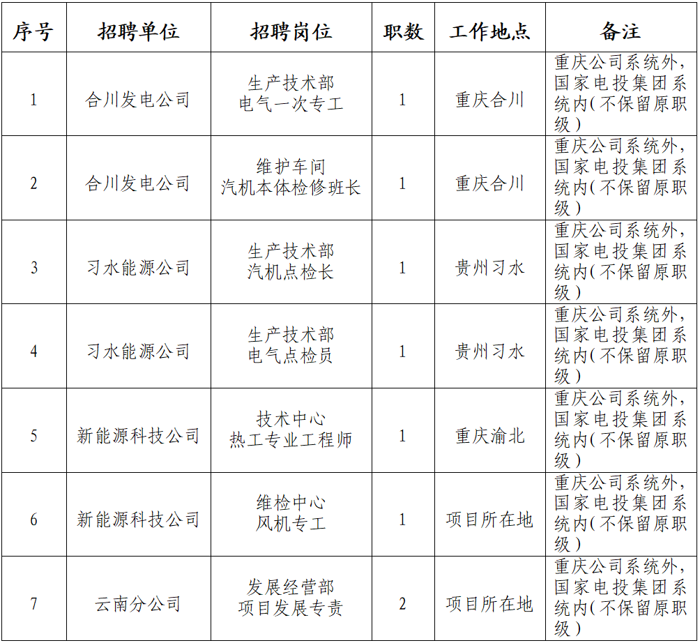 按照员工招聘有关规定,第二次发布公告,面向重庆公司系统外、国家电投集团系统内公开招聘有关人员,具体事项如下: