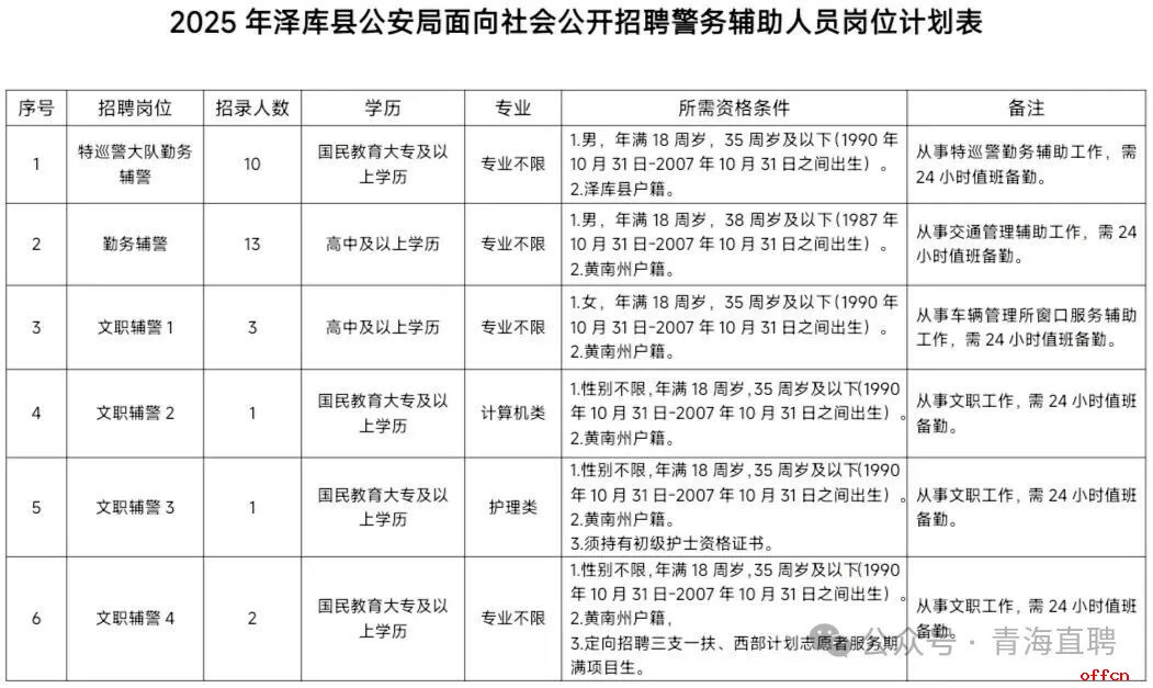 原文标题:2025年泽库县公安局面向社会公开招聘警务辅助人员公告