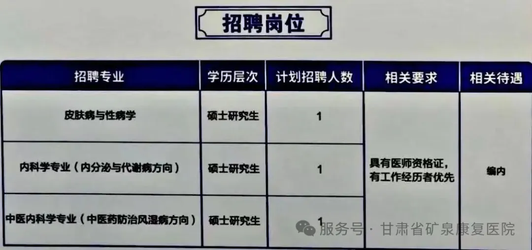 原文标题:甘肃省矿泉康复医院人才引进公告