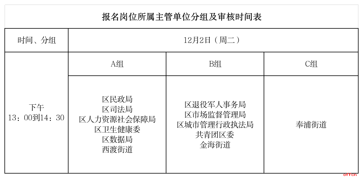 1、请考生线下提交材料时,严格按照报考的主管单位及岗位对应的时间和组别准时前来,逾期未至者,视为自动放弃面试资格。