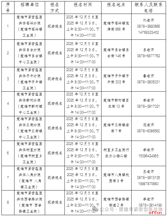 原文标题:2025年楚雄州楚雄市紧密型医共体第二批编制外职工招聘公告