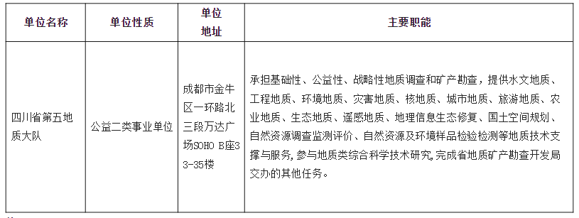 咨询电话:四川省第五地质大队人事科 028-83352002;