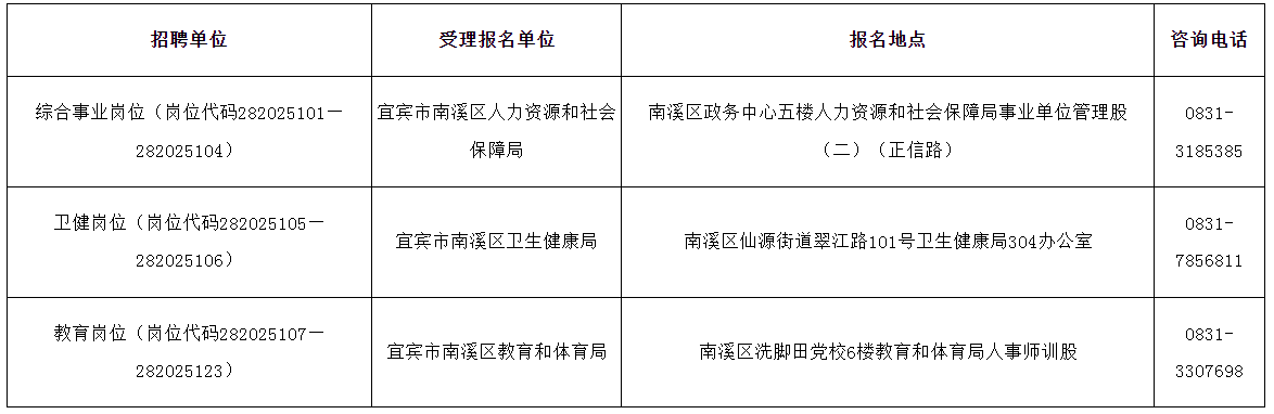 十一、本公告及未尽事宜由中共宜宾市南溪区委组织部及宜宾市南溪区人力资源和社会保障局负责解释。各招聘岗位的具体条件,由招聘单位负责解释。
