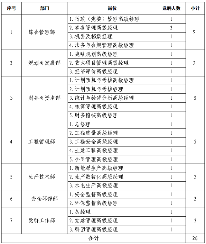 水电产业平台公司筹备组(简称:筹备组、工作地点:重庆市)根据工作需要,将2025年11月28日公开选聘的岗位延期至2025年12月31日17时结束。具体事项公告如下: