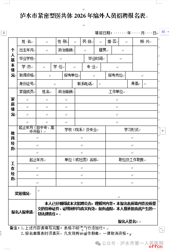 2.泸水市紧密型医共体2026年编外人员招聘报名表