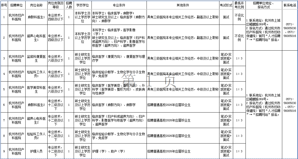 原文标题:2026年上半年杭州市妇产科医院(杭州市妇幼保健院)高层次、紧缺专业人才招聘公告(总公告)