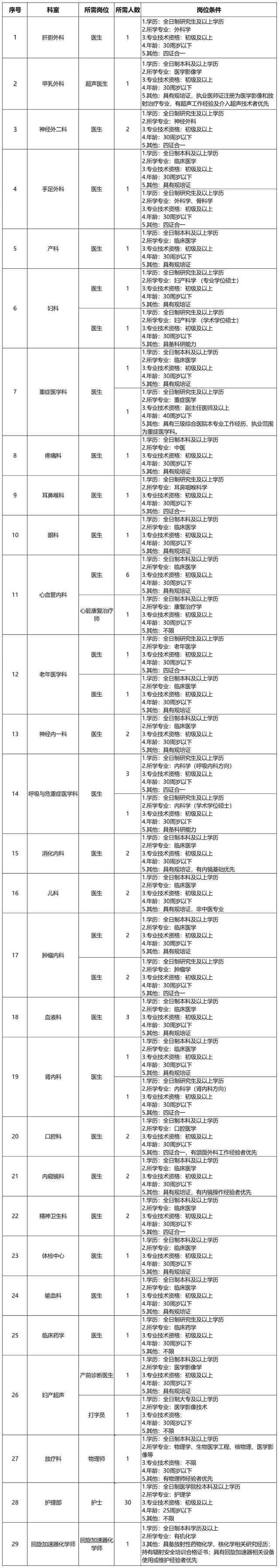 3. 年龄要求:30周岁及以下(副高及以上职称或紧缺专业硕士及以上学历者,可放宽至40周岁);