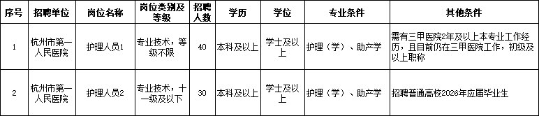 原文标题:西湖大学医学院附属杭州市第一人民医院2026年护理事业编制招聘公告