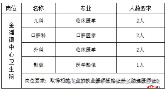 原文标题:金滩镇中心卫生院2026年医务人员招聘公告