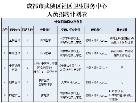 原文标题:【招聘公告】成都市武侯区簇锦社区卫生服务中心社会招聘编外专业技术人员