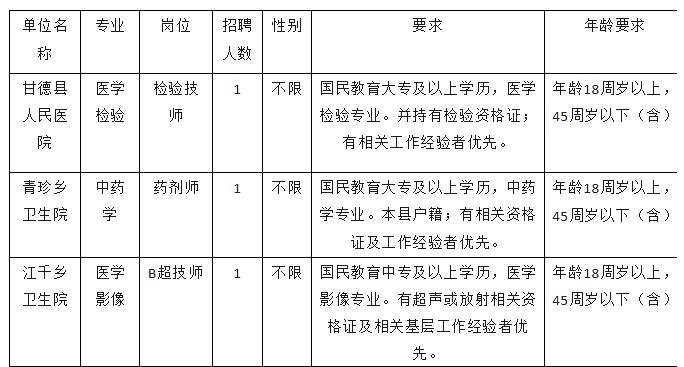 原文标题:甘德县域紧密型医共体总院编外人员招聘公告